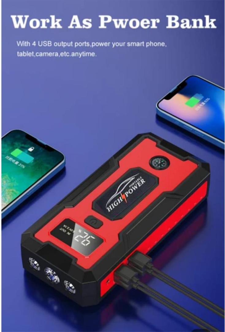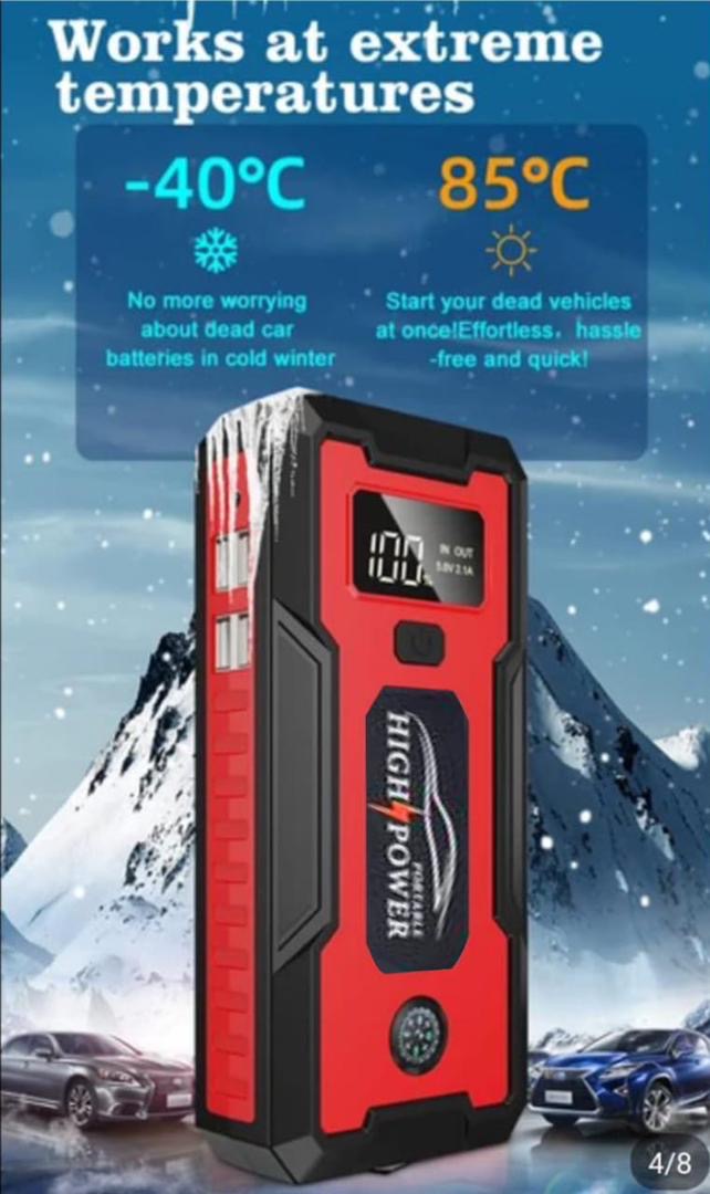 Instant Power on Demand: Say goodbye to long waits and stressful situations. Our High-Power Car Jump Starter delivers an instant surge of power, jump-starting your vehicle with ease. No more relying on the kindness of strangers or the inconvenience of calling for help. Take control of your car's destiny.Versatility at Its Finest: Not only is our Jump Starter designed to start cars, but it's also capable of powering up trucks, motorcycles, boats, and even recreational vehicles. With its remarkable power output, this versatile device is the ultimate companion for all your power needs.